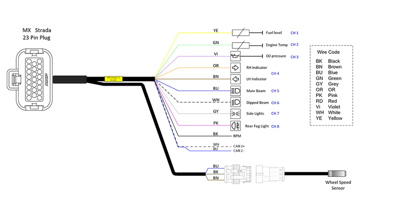 The MXG 1.3 Strada IVA display is available with a choice of connections. Choose either the OBDII or K-Line CAN, depending on whether you want to connect to the kit car's ECU or OBDII port or directly to the ECU through the CAN channel.