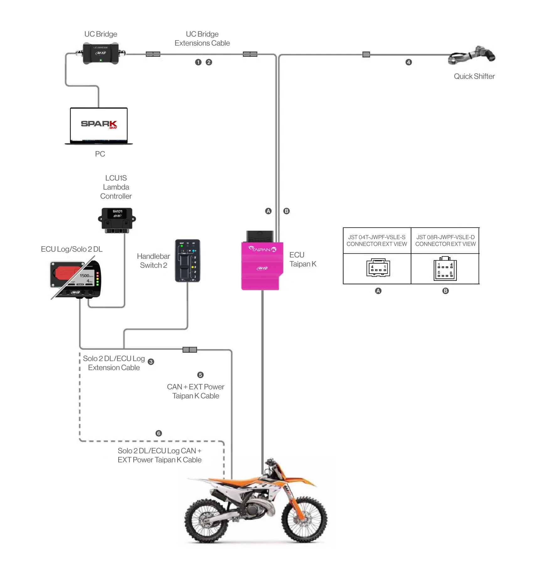 - CAN Connector: Connects to the Handlebar Switch 2 and data logger.
