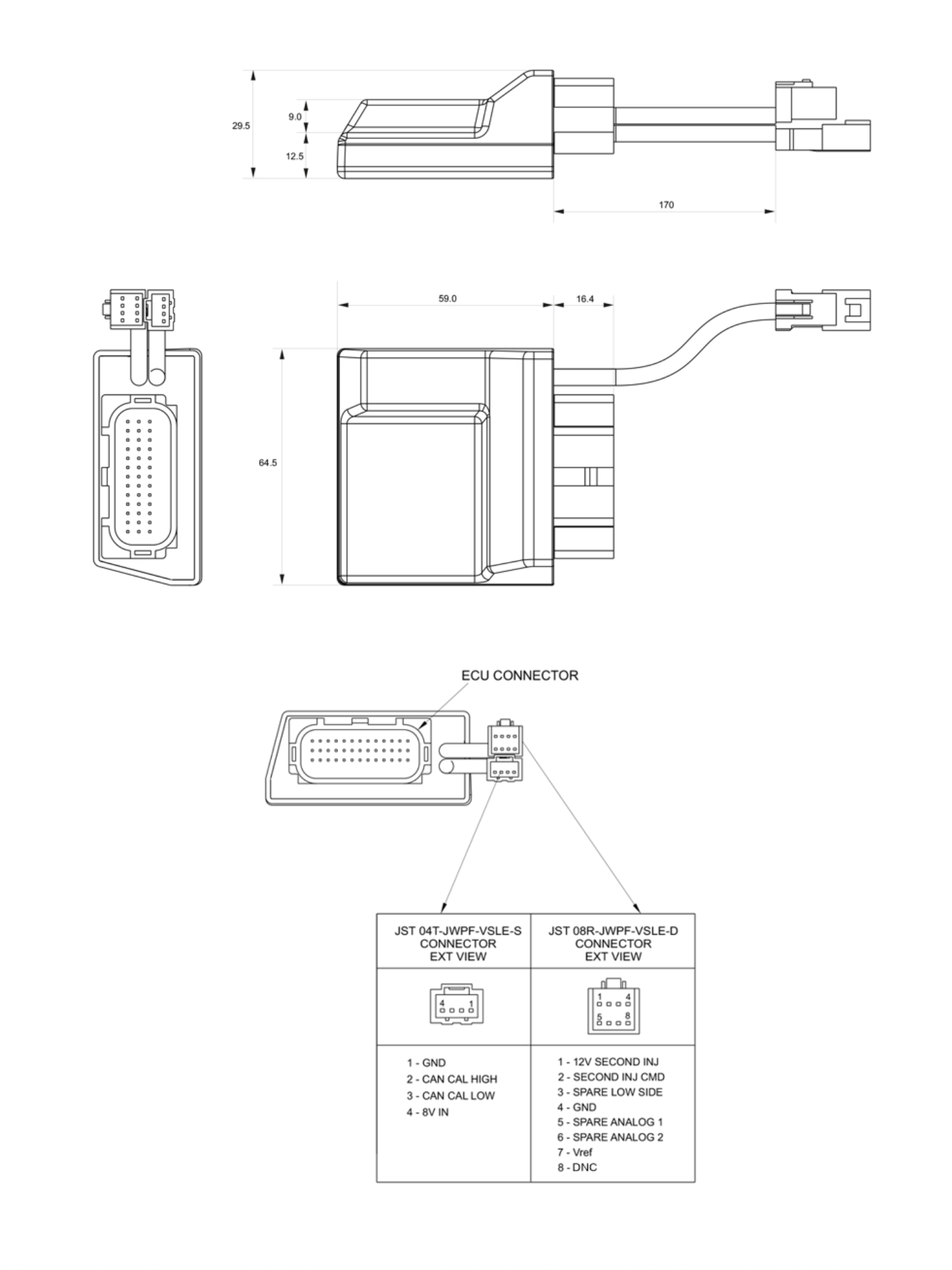 • 3rd Connector: Connects to spare analogue inputs and a possible second injector.