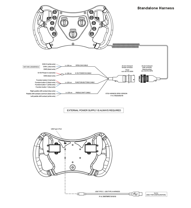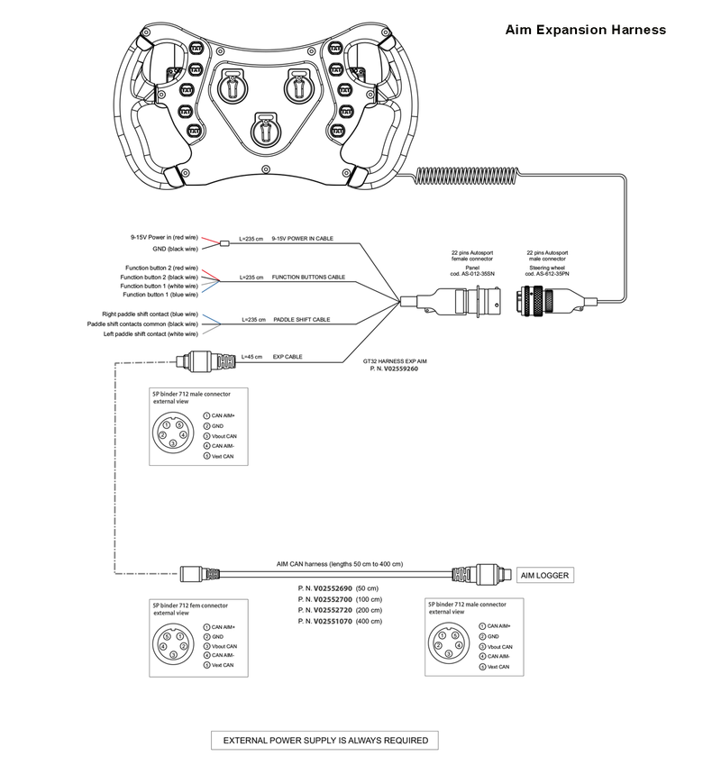 - Additional Controls: In expansion mode, the GT32 can also manage an Aim display connected to a PDM32 or PDM08 Power Distribution Module.
