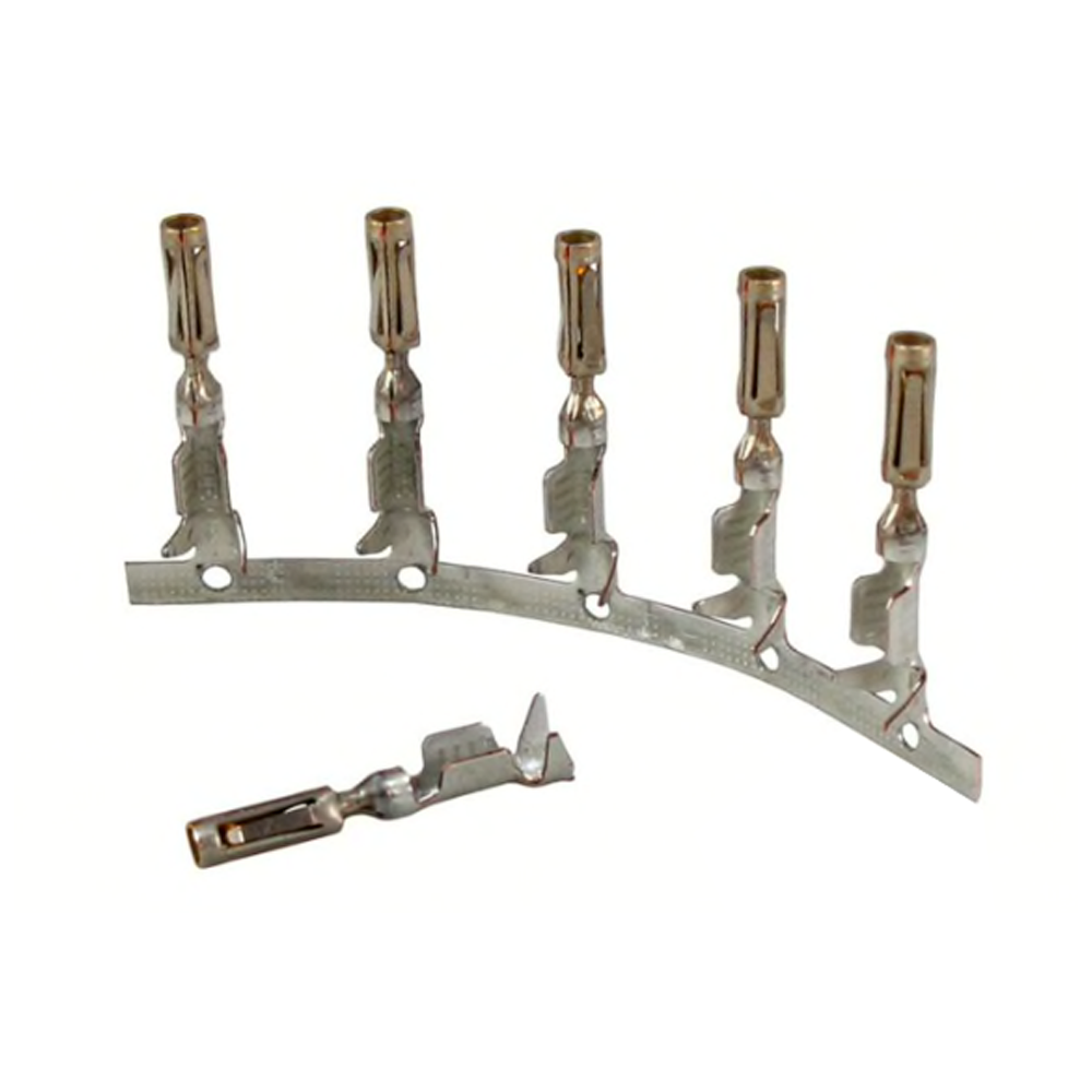 The Aim OBDII 2m external power cable connects your Solo 2 DL to your ECU wiring. The contacts are 1.3 mm stamped & formed sockets. They are made of copper alloy and are plated with either tin (up to 8 amps) or gold (up to 17 amps). These contacts accept 16-20 AWG (1.5 - 0.50 mm2) wires.